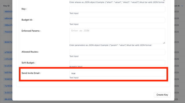 On the Create Key Modal, Select Advanced Settings > Set Send Email to True.